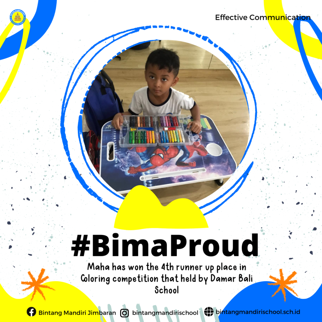 π Maha (Kiddy A – Lavender) has won the 4th runner up place in Coloring competition that held by Damar Bali School.