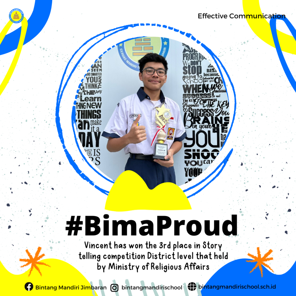 🌟 Vincent (IX – Newton) has won the 3rd place in Story telling competition District level that held by Ministry of Religious Affairs.